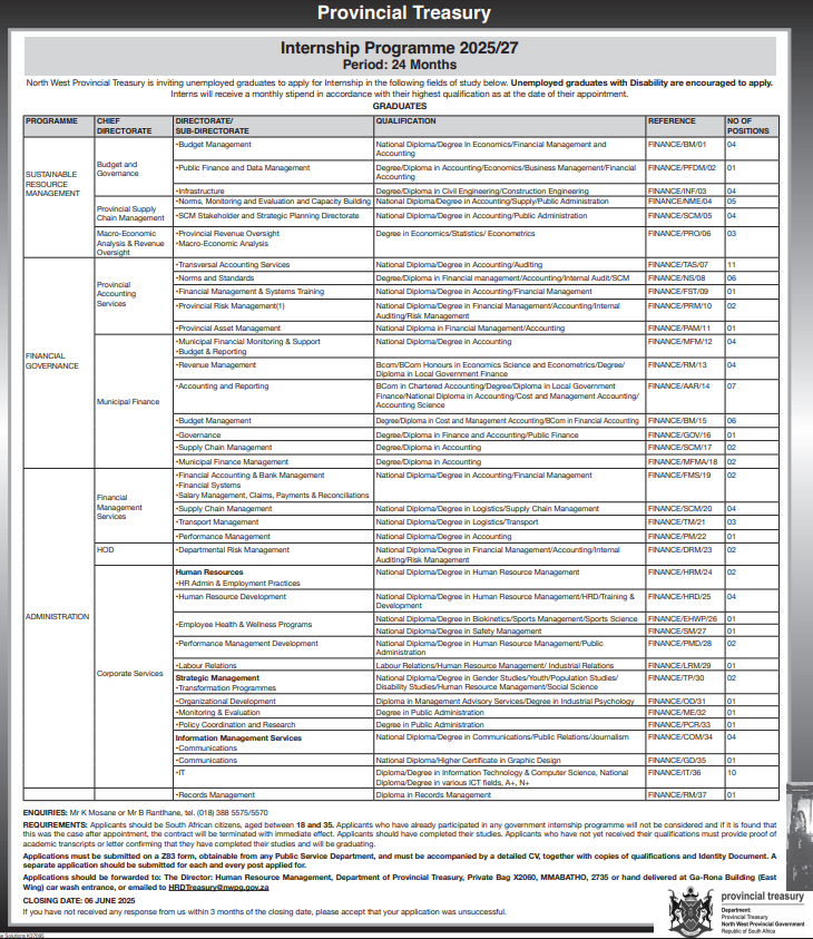 South African Civil Aviation Authority (SACAA) invites unemployed graduates to apply for Graduate Internships / Internship Programme for 2025 / 2026. Location: Centurion, Gauteng, South Africa Job Type: Graduate Internship Closing Date: 27 May 2025 The SACAA is taking applications for the 12 months graduates internship program in various departments to provide in-dept workplace experience in your chosen […]